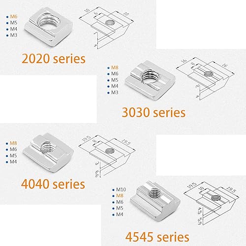 Dadi a T scorrevoli M6, in acciaio al carbonio, filettatura metrica, testa a martello, dado a T, per profili di estrusione in alluminio, 20 pezzi