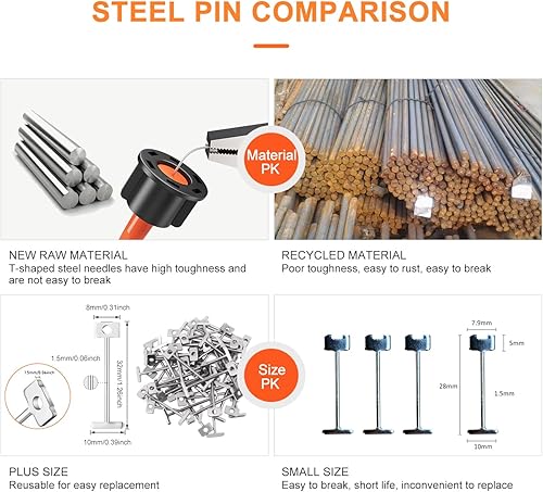 300 aghi di ricambio in acciaio da 1/16' per sistemi di livellamento di pavimenti, pareti e piastrelle, livellatore sostituibile da 1,5 mm, riutilizzabili, in acciaio, strumenti per la costruzione di