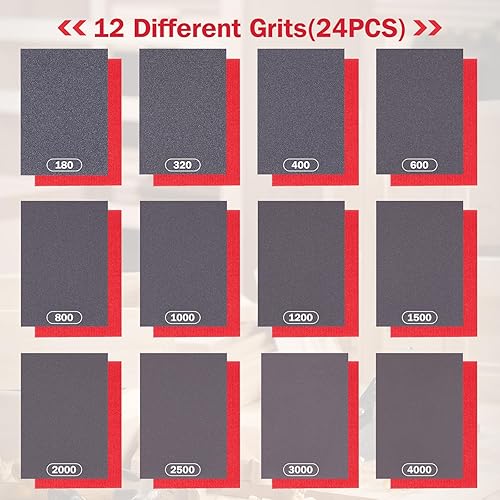 24 Pezzi Spugne Abrasive, 180-3000 Granularità Spugne Abrasive Riutilizzabile Bagnato-Asciutto per Legno e Metallo, Ringhiere, Lucidatura di Mobili
