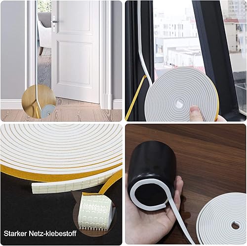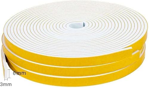 15m Nastro Sigillante Autoadesivo in Gomma, 6 mm x 3 mm, NAVK Paraspifferi per Porte Finestre Bagno Doccia Portiera Della Macchina, Anti Freddo, Rumore e Collisione- Bianco (5 m x 3 Rotoli)
