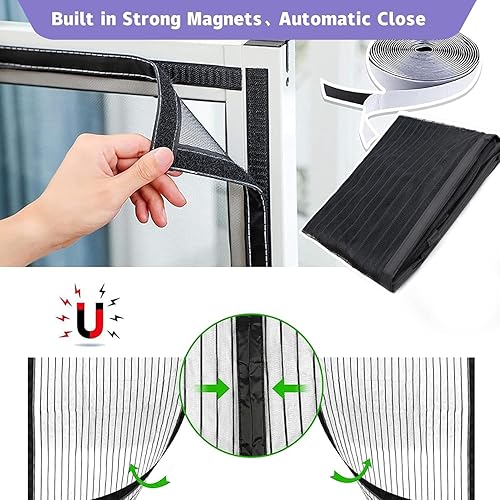 Zanzariera Magnetica Porta Finestra 116 x 120 cm Tenda Totalmente Magnetica Traspirante Aria Fresca Magneti Rete Anti Zanzare Anti Insetti Zanzariera per Finestre a Battenti, Grigio