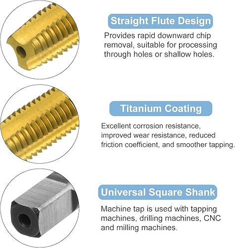Maschio per Filettatura Metrica M10 x 1.5 H2 130mm Extra Lungo Rivestito =Titanio M35 Strumento Riparazione Fresatura Filetti Fresatura Viti Flauto Dritto Acciaio ad Alta Velocità
