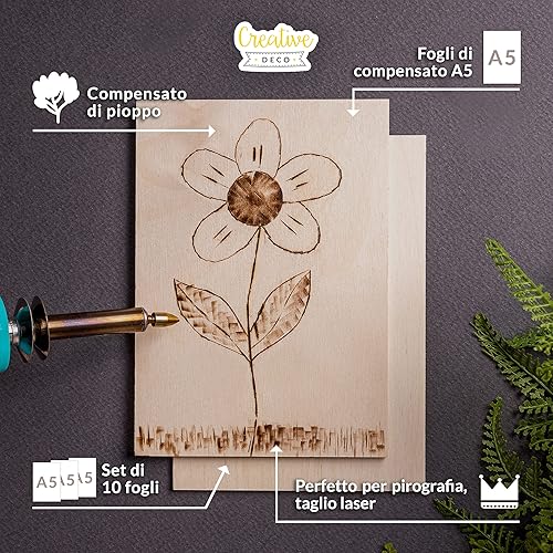 10 x A5 Compensato Pannelli Legno Pioppo 3 mm | Pannelli Compensato 148 x 210 x 3 mm (+/- 2mm) | Fogli di Legno per Decorazione, Modellare, Pannelli Taglio Laser, Pirografia, Pareti