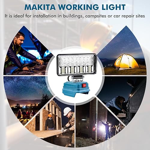 SPORWAY Lampada a batteria per Makita: 18 V, 90 W, luce di inondazione portatile, 2 modalità, lampada da lavoro a LED, batteria con 2 ricarica USB, 7500 lm, per cantieri, emergenze, cantieri