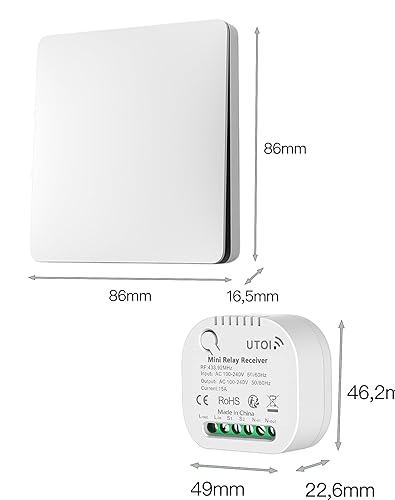 Interruttore Luci Senza Fili con Ricevitore 15A 220V, Interruttore Wireless Senza Batteria, Telecomando RF On Off Control a 2 Vie per Lampada LED, Bianco (2 Interruttori + 1 Ricevitore, 3 unità)