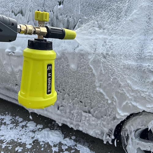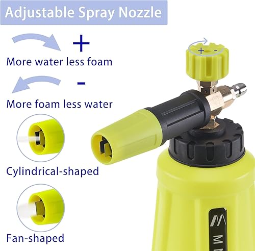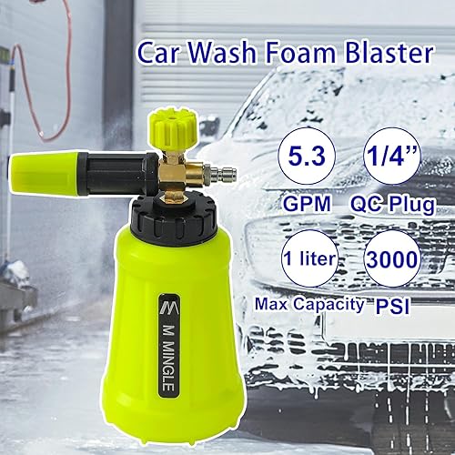 M MINGLE Cannone in Schiuma per Idropulitrice, Spruzzatore in Schiuma per Auto con Attacco Rapido da 1/4 di Pollice, Rondella in Schiuma per Autolavaggio Elettrico, 1 Litro con 5 Ugelli