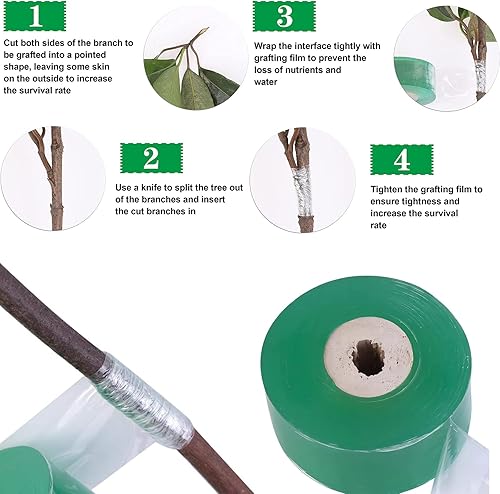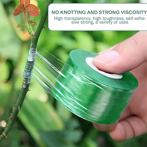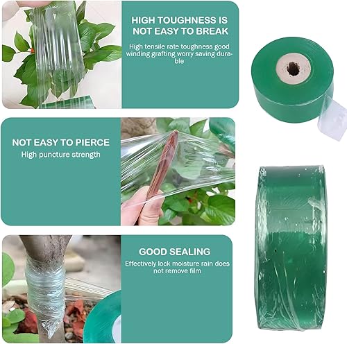 Nastro autoadesivo biodegradabile per innesto, 2 rotoli da 3 cm x 100 m, pellicola trasparente per riparazione piante per piantine di alberi, attrezzi da giardino estensibile con protezione