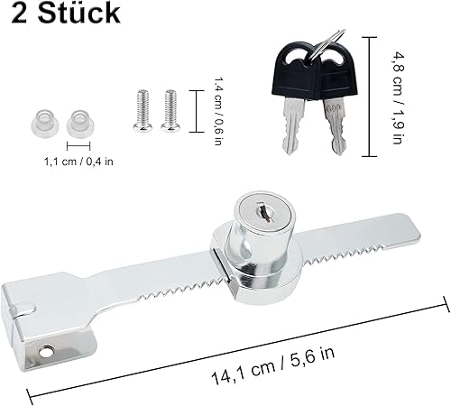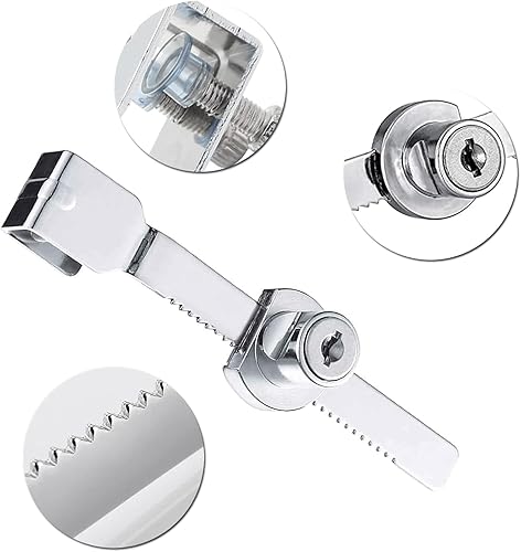 Confezione da 2 serrature a cremagliera, serrature per terrari, serrature per vetrine, con vite di fissaggio, serratura a cricchetto, serratura per porta in vetro, con chiavi diverse