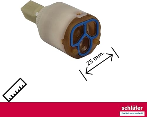 Schläfer 480020 | Cartuccia Miscelatore 25mm ? Ricambio Ceramico Bassa con 2 Piedini e Leva in Plastica per Rubinetti Monocomando Cucina, Bagno, Doccia, Bidet, Vasca