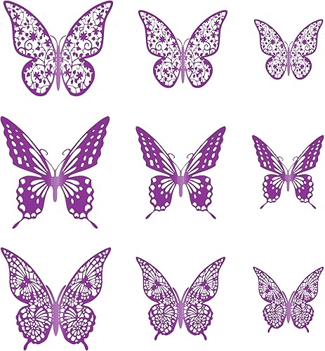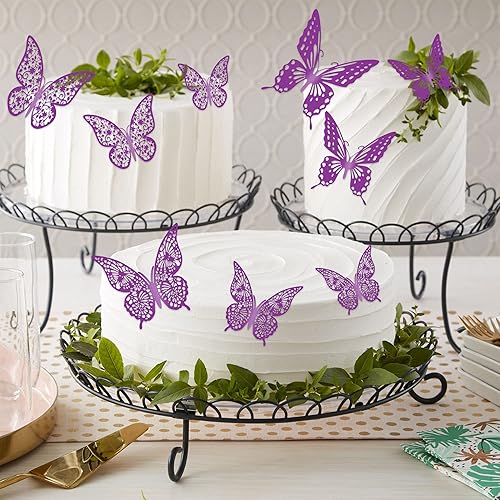 Confezione da 36 decorazioni per cupcake a forma di farfalla in 3D viola con glitter, decorazioni per torte di compleanno, matrimonio, farfalla, adesivo da parete per sfondo decorazione da parete