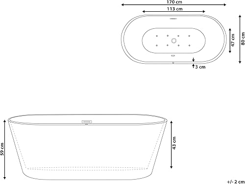 Vasca da Bagno Idromassaggio Ovale in Acrilico Bianco 170 x 80 cm