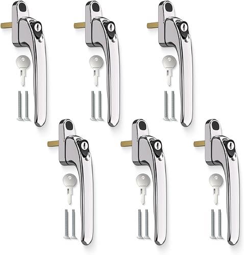 6 maniglie in linea per finestre in PVC dorato, in zinco UPVC, mandrino da 43 mm, per finestre in uPVC per interni ed esterni