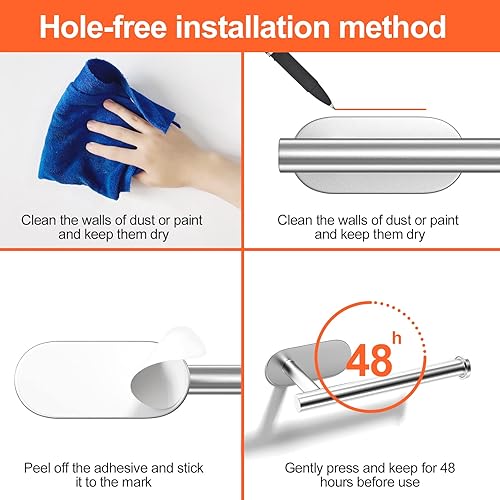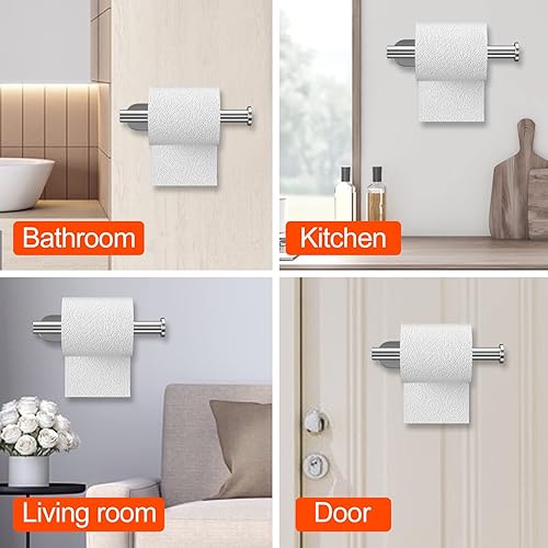 Porta Carta Igienica senza foratura, Portarotolo per carta igienica autoadesiva, Porta fazzoletti in acciaio inox, Adatto per porta carta igienica per bagno, cucina, soggiorno(d'argento)