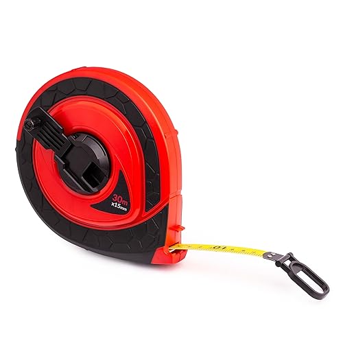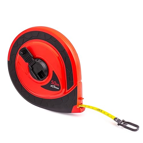 Metro a nastro 50m - Robusto metro a nastro - Manovella pieghevole - Rotolo metro - Fibra di vetro - Rapida retrazione del nastro - Inserti gommati antiscivolo - Alloggiamento in plastica ABS