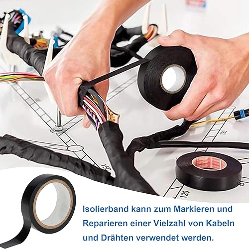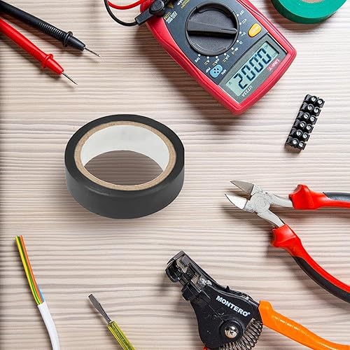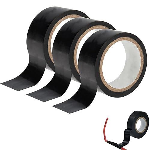 Nastro isolante per elettricista, in PVC, 3 pezzi, 30 mm x 20 m, per lavori di cablaggio, riparazioni e sigillatura (nero)