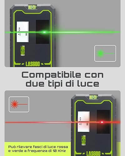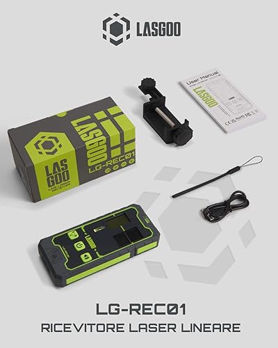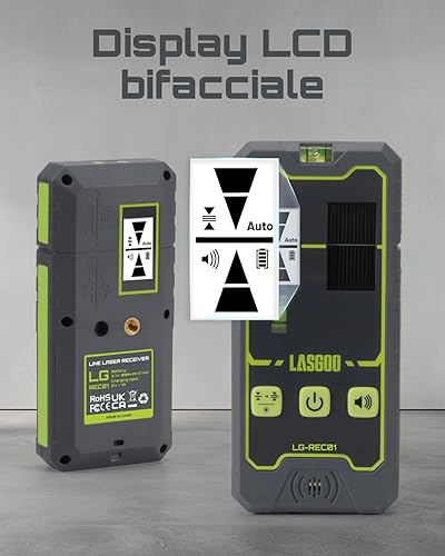 LG-REC01 Ricevitore per Livella Laser, Doppio Display LCD, Rilevatore di Raggi Laser Verde e Rosso, Fino a 50m, Batteria Ricaricabile Integrata, Morsetto Incluso