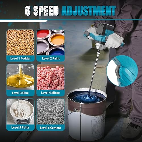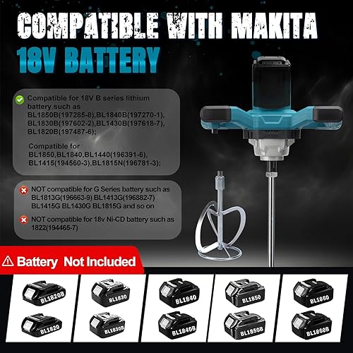 Miscelatore per malta a batteria, compatibile con batteria Makita, miscelatore per malta a colori senza brushless con frusta diametro 10-15 cm (cambio a 6 marce, max 680r/min, senza batteria)