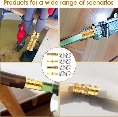 Kit di riparazione per tubi flessibili da 0,95 cm, connettori in ottone per tubi dell'aria con morsetti in acciaio inox per acqua/carburante/aria
