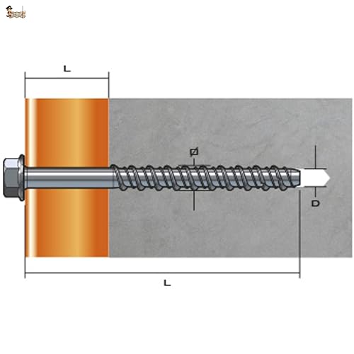 BricoLoco Vite di ancoraggio per fissaggio diretto su calcestruzzo. Non richiede tassello. Autofilettante. Testa esagonale. Acciaio zincato. (100, 10 x 80)