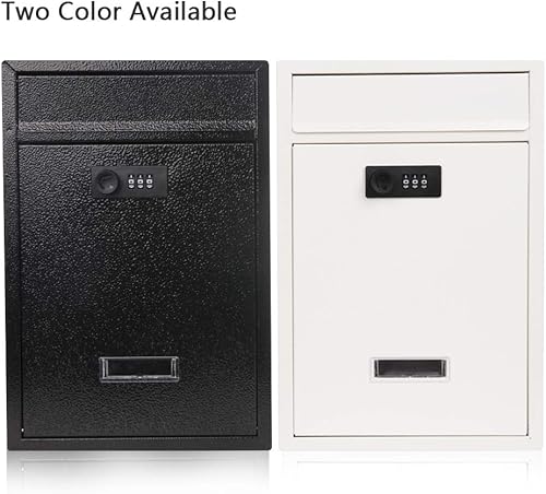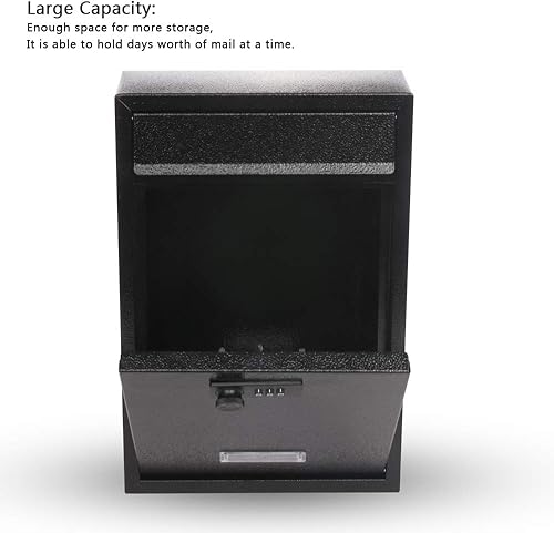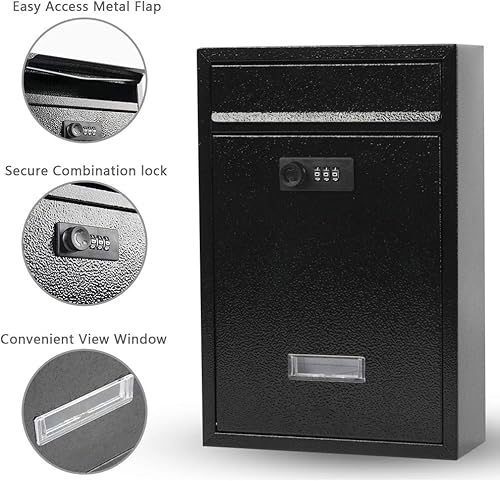 KYODOLED Cassetta postale con chiusura a parete, con serratura a combinazione per esterni, cassetta di sicurezza con codice, 31 x 21 x 8,54 x 8,5 cm, nero