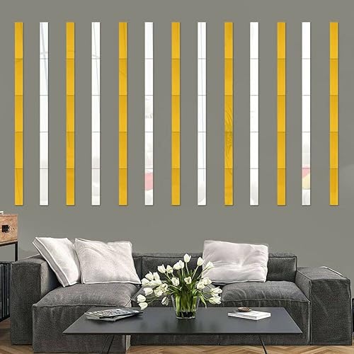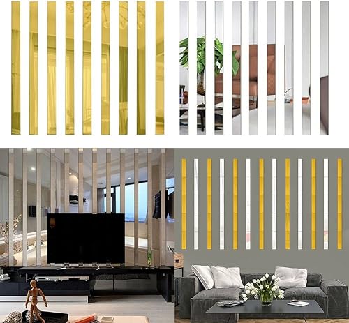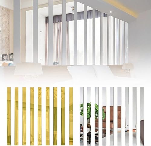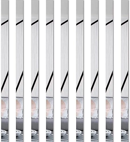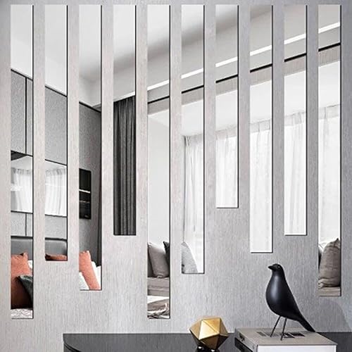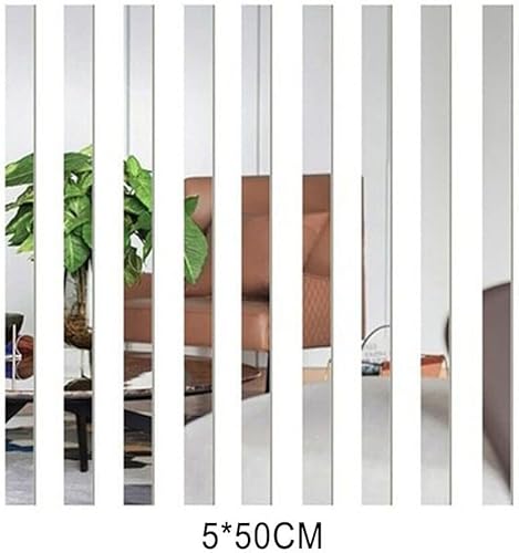 Adesivo da parete a specchio acrilico a mosaico, 10 pezzi, striscia lunga argento, adesivi da parete per soggiorno, bagno, camera da letto, casa, 5 × 50 cm