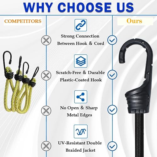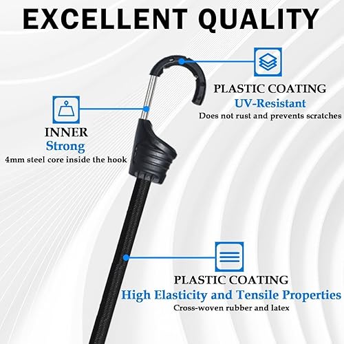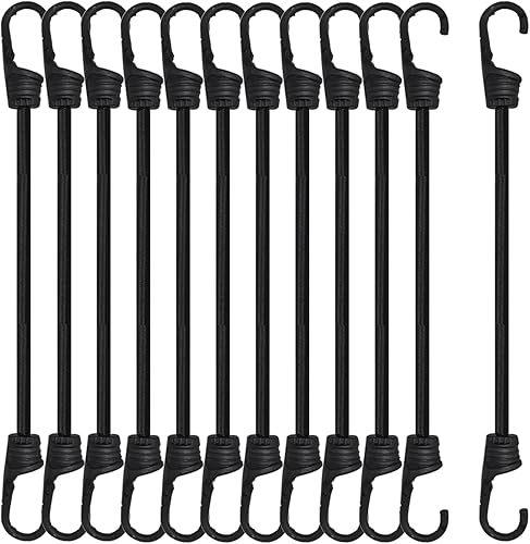 12 Pezzi Corde Elastiche con Gancio,Corda Elastica, Bande Elastiche, Fasce Elastiche, Cinghie Elastiche, Elastici con Ganci, per il Fissaggio di Bagagli, Portabagagli, Campeggi (30 CM)