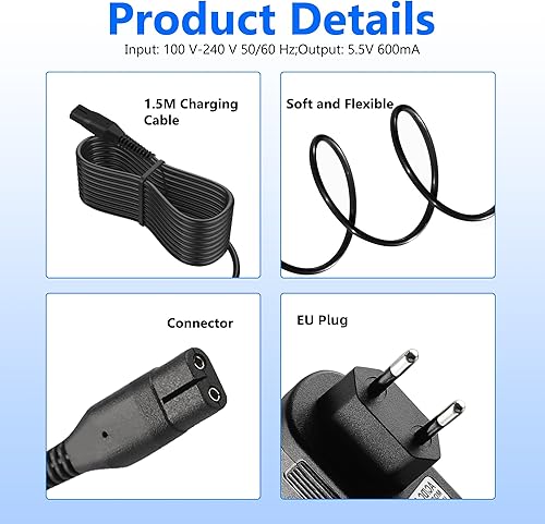 Xahpower 5,5V Caricatore per Karcher Window Vac, Cavo di Ricarica Compatibile con WV1, WV1 Plus, WV2, WV2 Plus, WV5, WV60, WV70