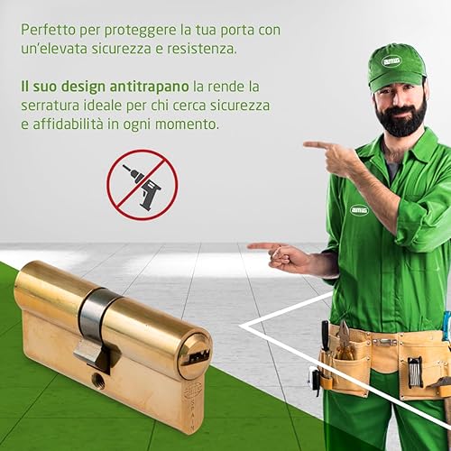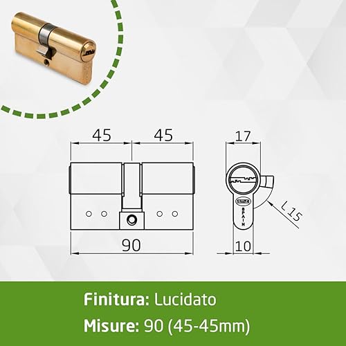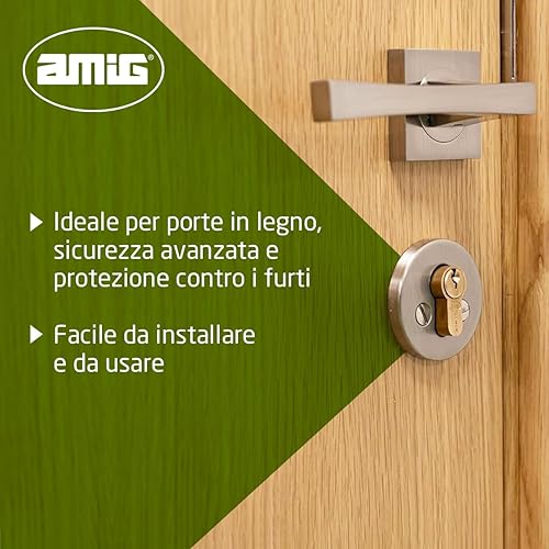 AMIG - Cilindro Serratura di Sicurezza per Porte - Misura 90 (45-45) - 6 Pini - Sistema Antiforo - Leva di 15 mm - Include 5 Chiavi a Punta in Ottone e Vite da 90 mm - Finitura Lucida Multipunto