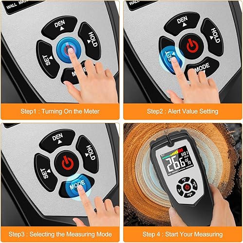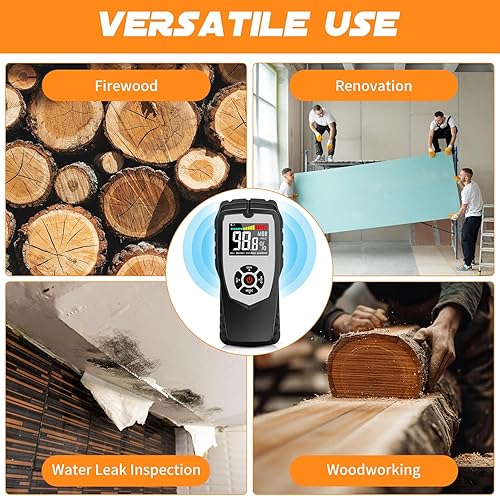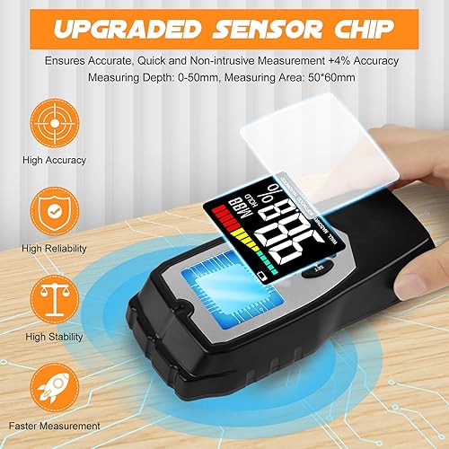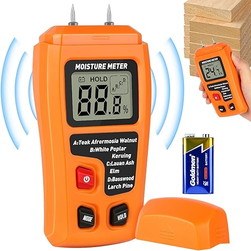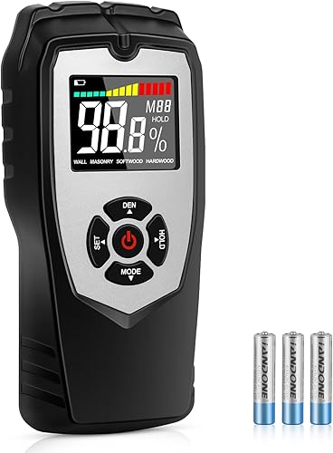 Flintronic Misuratore di Umidità, Misuratore Umidità Legni, Rilevatori Di Umidità Igrometro Senza Ago, Misuratore di Umidità con Batteria Display LCD, per Legni, Parete, Pavimenti, Legno, Gess
