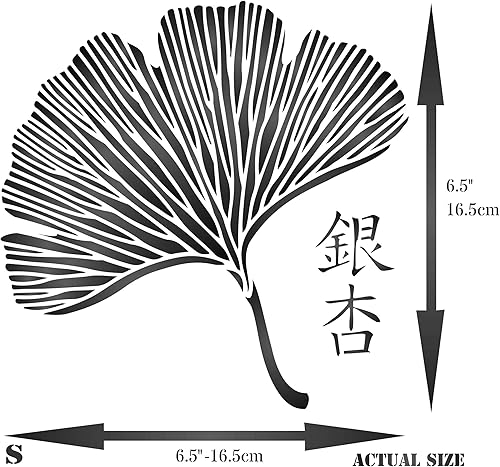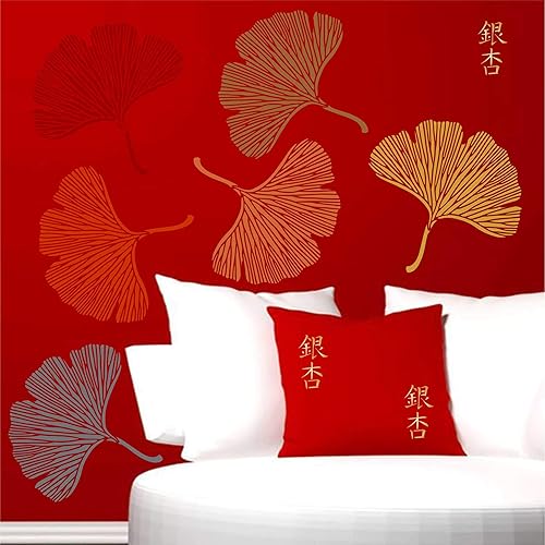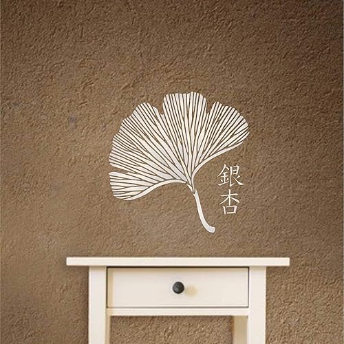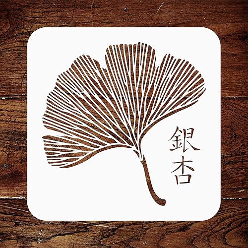 Stencil a forma di foglia di Gingko, 16,51 x 16,51 cm (S) – Oriental Leaves Asian Chinese Character Japanese Leaf Wall Stencil
