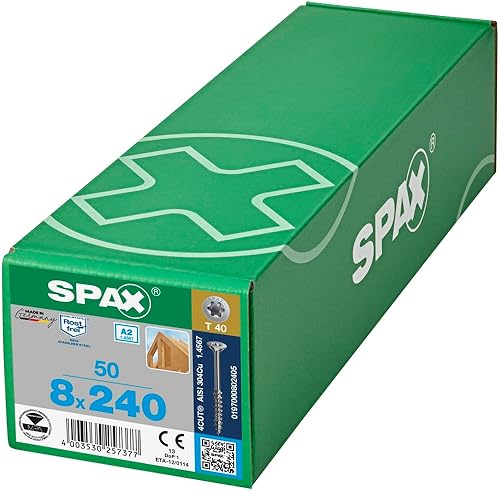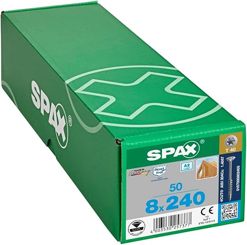 Viti in acciaio inox, 8 x 240 mm, 50 pezzi, filettatura parziale, testa svasata, T-STAR plus T40, 4CUT, in acciaio inox A2-0197000802405