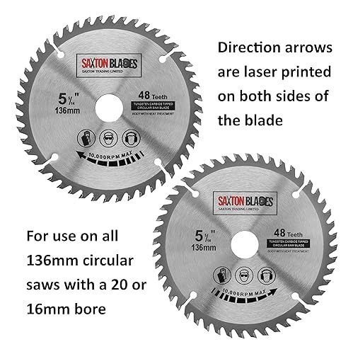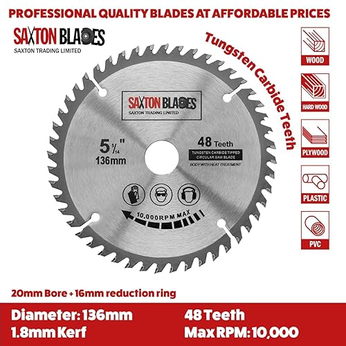 Saxton TCT - Lama per sega circolare per legno, 136 mm x 20 mm (anello da 16 mm), 24 e 48 denti, compatibile con Bosch Makita ecc., confezione da 2