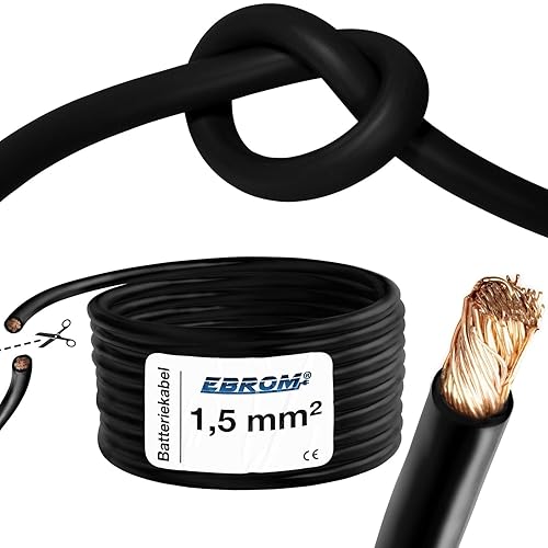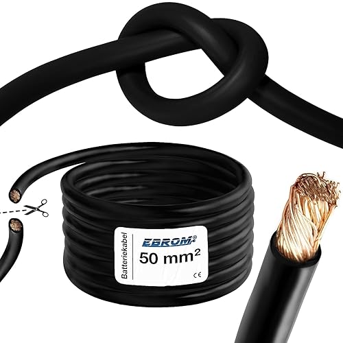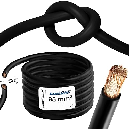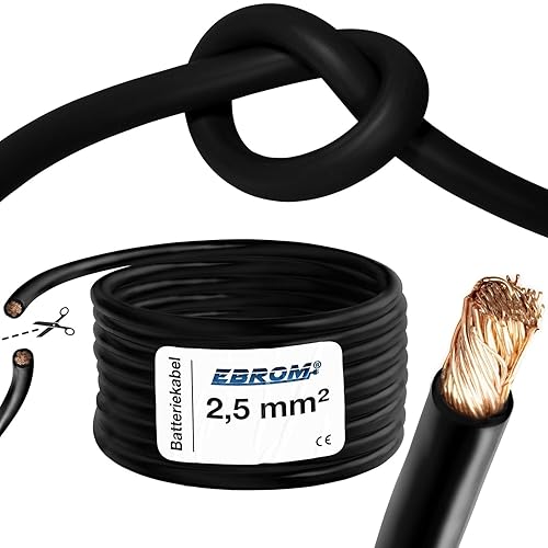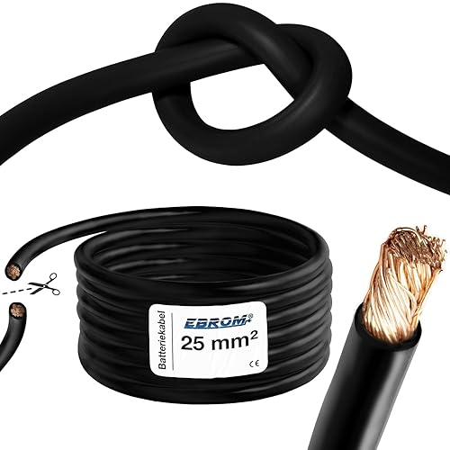 EBROM Cavi per batteria Hi-Flex (Hi Flex) da 25 mmq, vendita al metro, e nero, molto flessibile, guaina in PVC (70 ± 5 Shore), 100% rame OFC, cavo di avviamento, ricarica o funzioni simili