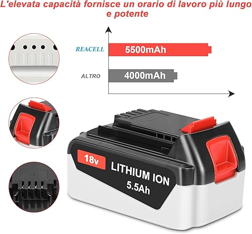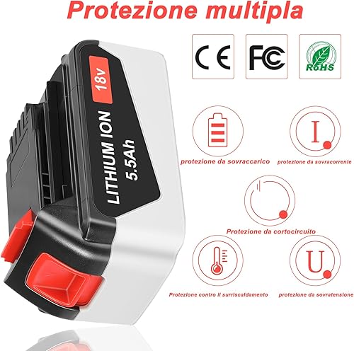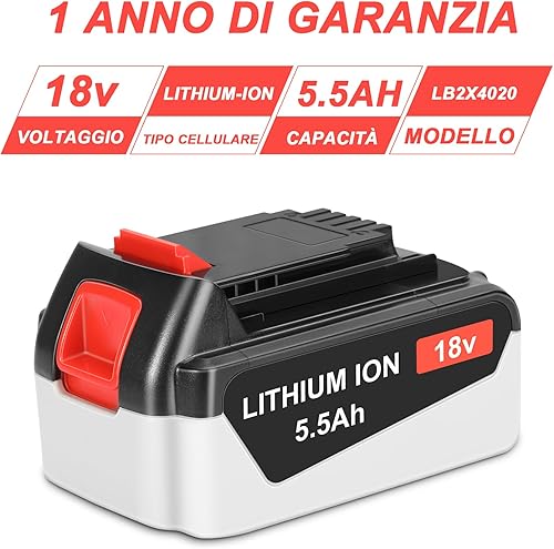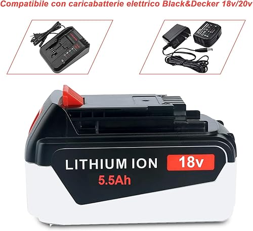 5.5 Ah Batteria di Ricambio per Black+Decker 18V Litio BL2018 BL2018-XJ LB2X4020 LB20 LBX20 LBX20 LST220 LBXR2020-OPE LBXR20B-2 GKC1825L GTC1850L20 STC1820