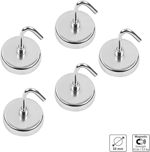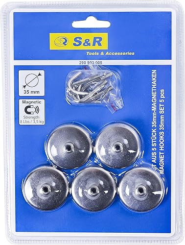 S&R 5 Ganci Magnetici da 35 mm. Magnete potente per cucina frigo ufficio bagno garage utensili