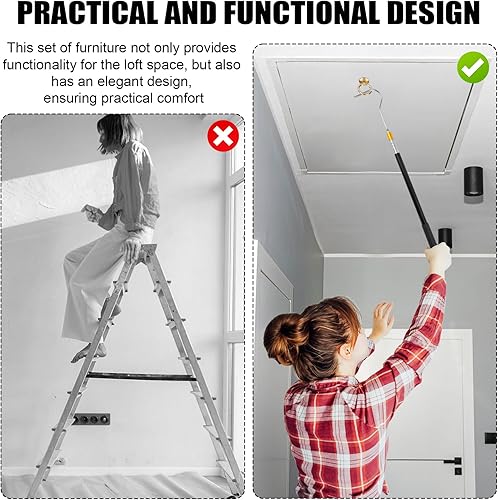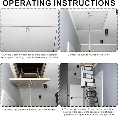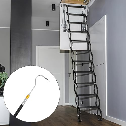 Kit Sistema Discesa Scala, Pratico Kit Sistema Discesa Scala Soffitta con Tirante Retrattile Fino a 164cm con Gancio M4 Vite Dado Kit Sistema Discesa Scala Soffitta Accessori Scala Soffitta
