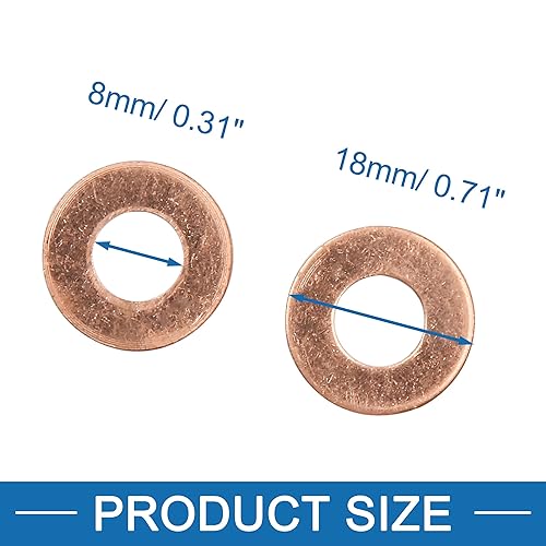 Rame Rondella M8 x 18mm x 1mm Piatto Sigillante Guarnizione anellos (Set di 30)