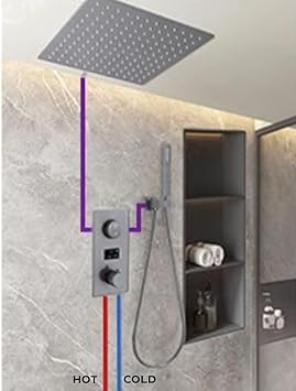 Miscelatore termostatico Doccia incasso - Set doccia incasso con soffione e doccetta, Kit Doccia Completo con LED Digital, Grigio
