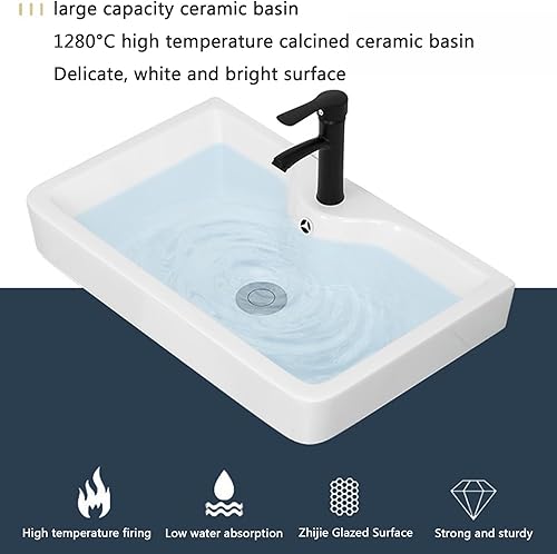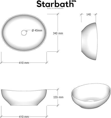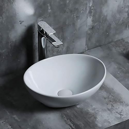 Lavabo in ceramica bianca - Forma ovale - Dimensioni 41 x 33 x 15 cm - Ideale per i piani d'appoggio di bagni e toilette - Design elegante