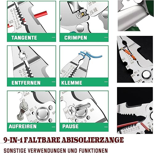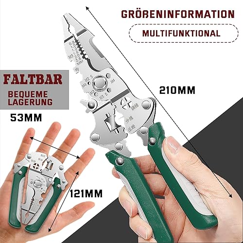 18 in 1 Pinza Spellacavi Elettrici Pieghevole, Pinza Multiuso Elettricista, 211 mm Attrezzi Elettricista Professionali, Pinza Crimpatrice per Installazioni Elettriche (verde)