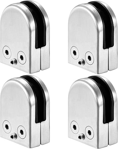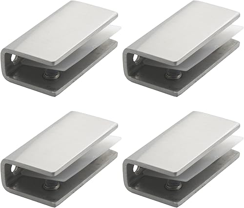 Reggimensola Vetro, 4 Pezzi Morsetto per Vetro in Lega di Zinco, Morsetti Ferma Vetro per Vetro di Spessore 3-25MM, Finito Spazzolato, Morsetti Vetro per Corrimano Scale Balaustra, dargento