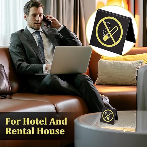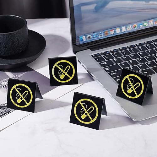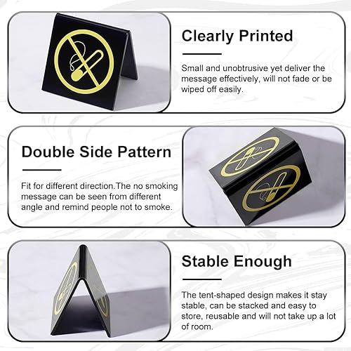 AHANDMAKER 10 cartelli bifacciali in acrilico per tende da tavolo, non fumare, non fumare, non fumare, non fumare, cartello da tavolo per ristoranti, uffici, centri commerciali, caffè, nero