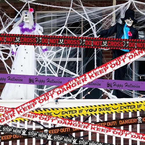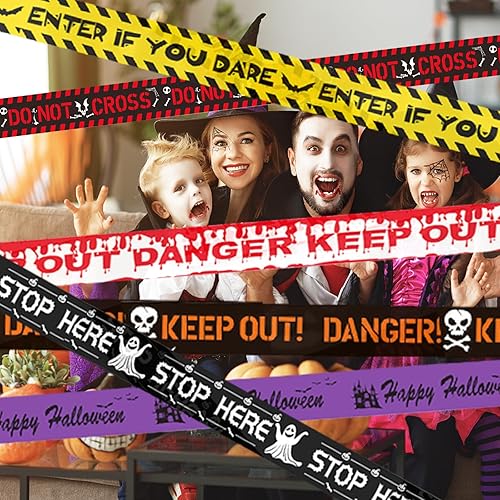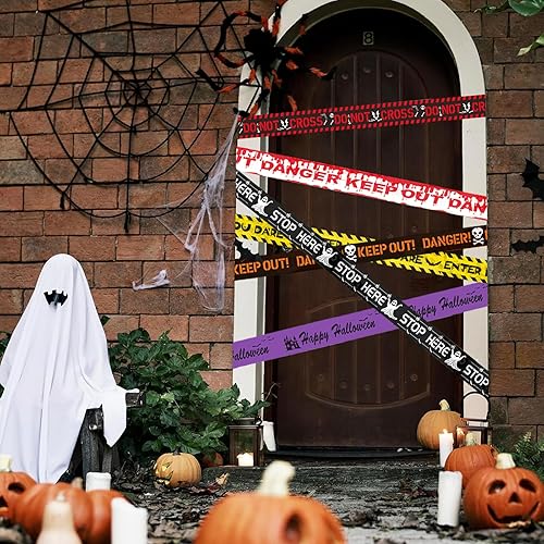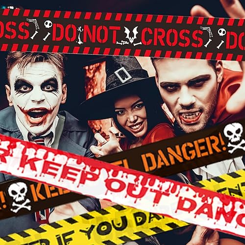 Kujinova Nastro di Avvertimento di Halloween, Nastro Crime Scene 4.8 cm x 25 m, Sicurezza Caution Tape per Zombie Party, Bande Warning Halloween, per Feste All'aperto, Casa Infestata, Giardino