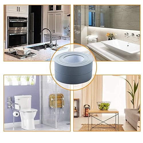 Zhongtou 2 Pezzi Nastro Sigillante Impermeabile Autoadesiva Nastro Profili in PVC Antimuffa Nastro Adesivi Nastro Sigillante per Bagno Cucina Mobili Angolo Parete Grigio