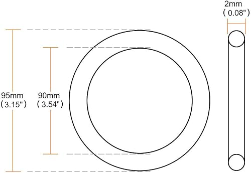 95mmx90mmx2mm Nitrile Gomma O-ring, 5pz Metrico Meccanico Sigillatura Guarnizioni, Nero