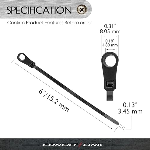 100 fascette stringicavo in nylon con foro di montaggio, 18,1 kg, 15,2 cm, colore nero
