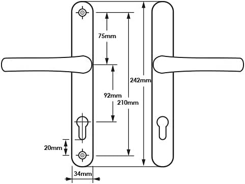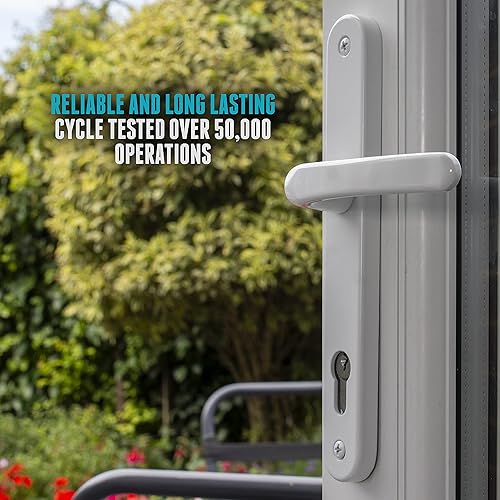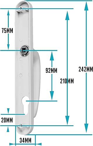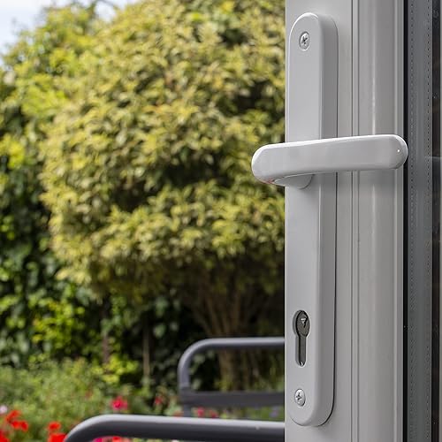 UPVC Maniglia per porta WhiteLever/Lever92mm PZ (centri) 210mm Vite a vite Piastra di supporto 242mm x 34mmUPVC Maniglia per porta esterna Maniglia bianca di ricambio UPVC, bianco, nero (21592WH)