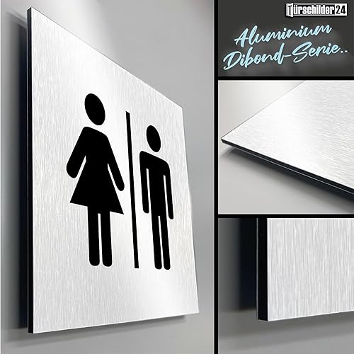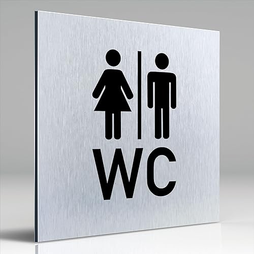 Targa in alluminio Dibond per porta • 120 x 120 x 3 mm • WC – WC Pikto Toiletten • 100% Made in Germany (WC + pittogramma)