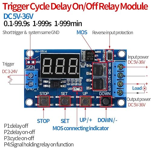 Modulo Timer,Interruttor Timer LED DC 5V - 36V Interruttore del Timer di Ritardo del Ciclo di Attivazione/Disattivazione del Modulo Relè con Display a LED