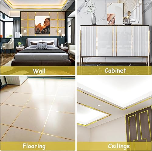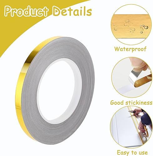 2.5 cm*50M nastro decorativo da parete dorato autoadesivo modanatura flessibile autoadesiva Strisce Adhesive Decorative per specchi, pareti, decorazioni per caminetti (2,5 cm, oro)